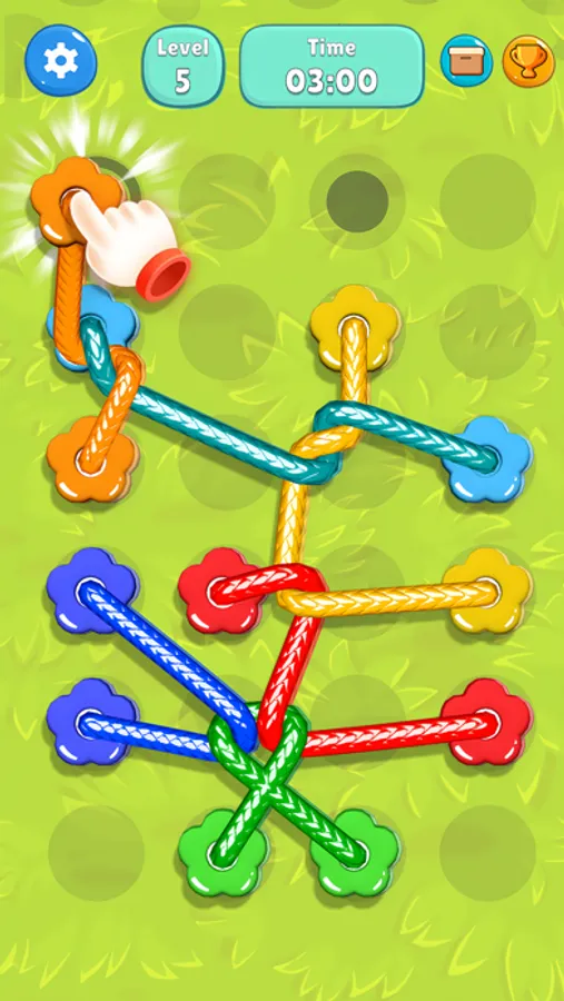 Each level presents you with a unique tangled rope puzzle that's like stepping into a maze of knots, loops, and twists. Move the rope in various directions by simply swiping or tapping on the screen. Your challenge? To figure out the smartest moves to untangle the knots and free the trapped ends of the rope. Get ready to flex your brain muscles and embark on this exciting quest!