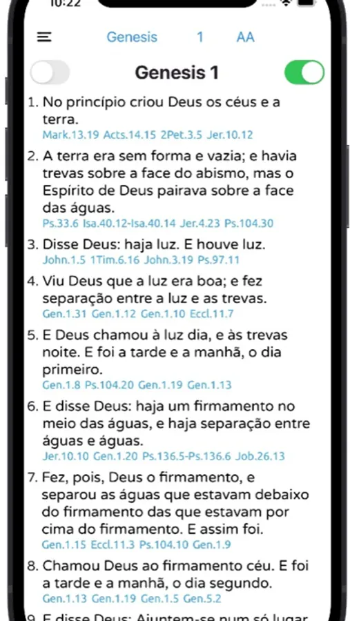 Bíblia de referência cruzada oferece aos usuários a capacidade de navegar por textos bíblicos relacionados, comparar interpretações entre duas versões da Bíblia, usar o modo escuro e alternar entre os textos relacionados. Você pode ler a Bíblia usando a funcionalidade de áudio e todos os recursos estão disponíveis offline.