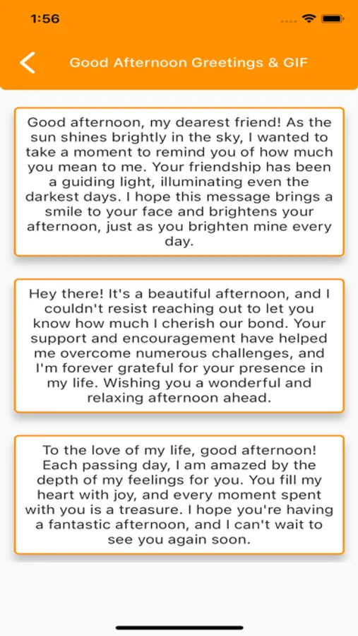 Radiant Positivity: Offer users a handpicked selection of greetings and GIFs radiating with positivity, creating an atmosphere of optimism and vitality during the afternoon hours.