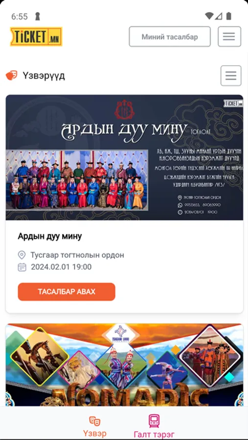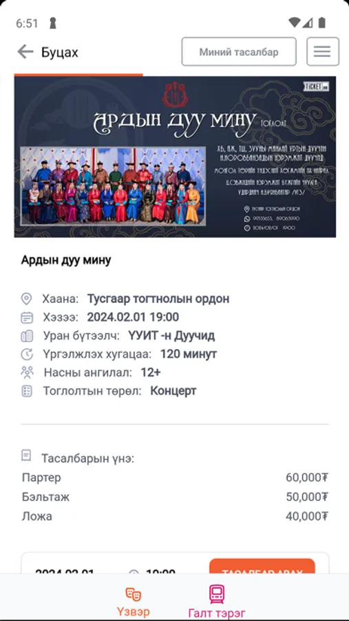 - Концерт, Жүжиг, Дуурь зэрэг үзвэрийн билет захиалах