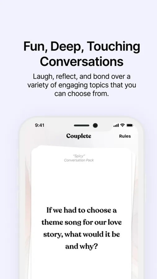 Freedom of Choice: With 'Couplete,' you set the pace. Choose topics that resonate with you and skip the rest. With no strict rules, you're free to explore your relationship in a way that feels right for you.