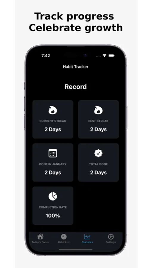 Streaks That Grow with You: Celebrate your consistency with streaks that showcase your discipline. It's not just about marking off a to-do list; it's about building lasting habits.