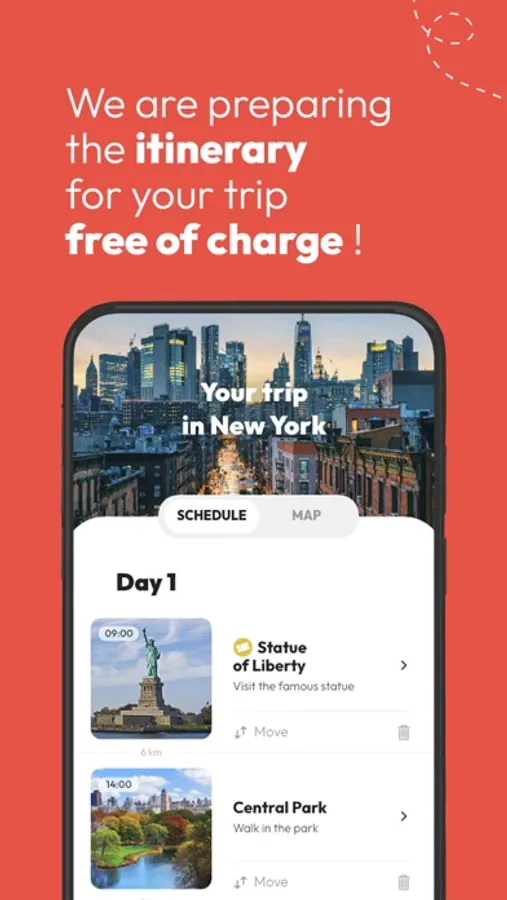 Intelligently, mapNGo creates tailor-made itineraries, indicating the best tourist attractions in the city, the distance between them and suggesting the ideal dates to visit them. Additionally, the app reminds you of essential items for a perfect journey, such as your passport and other important details. Travel with confidence and discover each destination in a unique way! It's as simple as saying Map And Go
