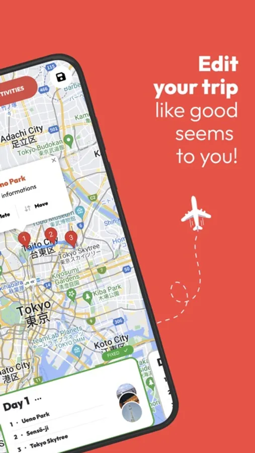- Personalize your itinerary with tourist attractions that suit your taste by adding or deleting them