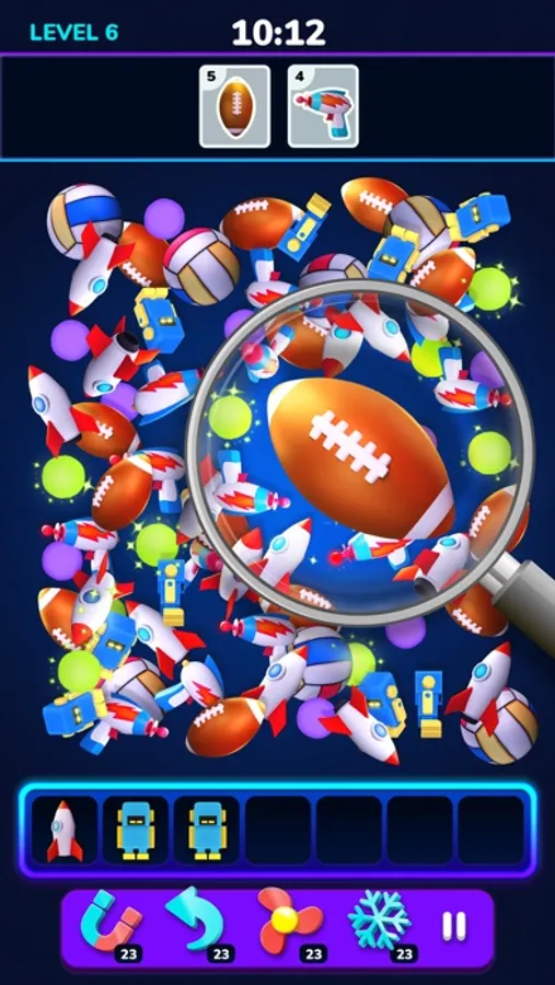 Clear and merge items off the playing field by finding the items in the pack and tapping them away to whittle down the pile.