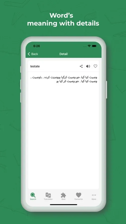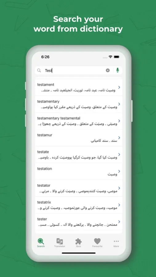 Explore an extensive vocabulary, user-friendly interface, English definitions, engaging quiz games, spoken English and English audio pronunciations. English to Urdu Dictionary Offline and Translator Also provide the Translator to translate Urdu text into multiple languages.