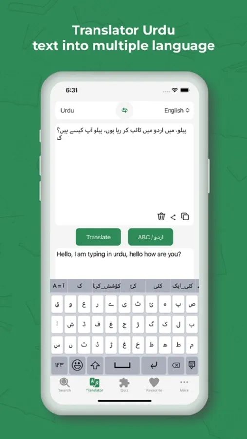 English to Urdu Dictionary Offline will provide an Urdu Keyboard for Writing in Urdu within the translator page. With this feature, you can enhance your communication and understanding of Urdu like never before.