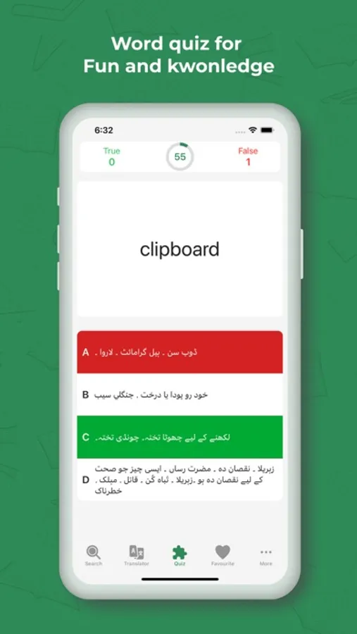 Challenge your language skills with our engaging English to Urdu Word Quiz Game! Test your vocabulary, expand your linguistic horizons, and have fun while learning. This interactive quiz game offers an exciting way to improve your command over both English and Urdu. With a wide range of words and challenging questions, you can enhance your language proficiency at your own pace. Whether you're a student looking to boost your language skills or simply seeking an enjoyable word game, our English to Urdu Word Quiz Game is your perfect choice.