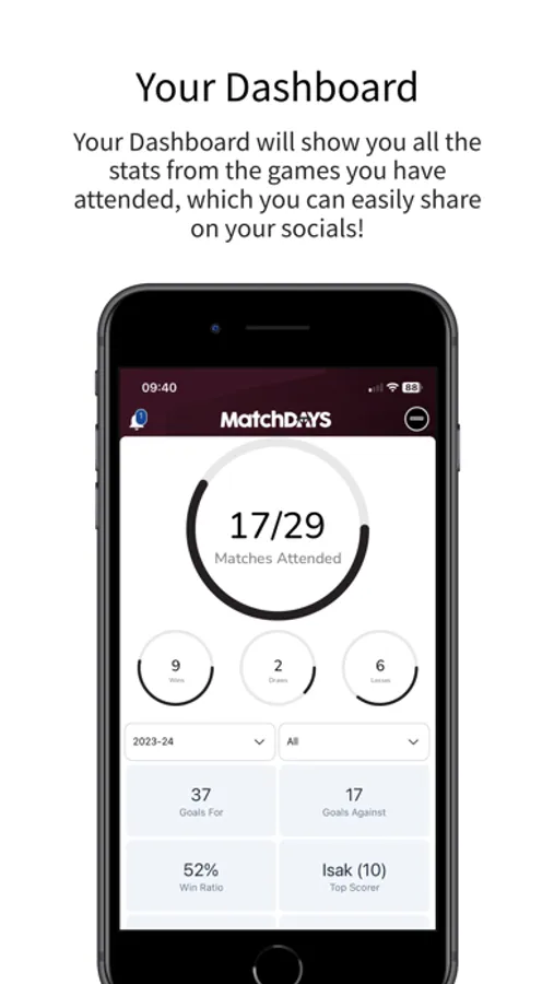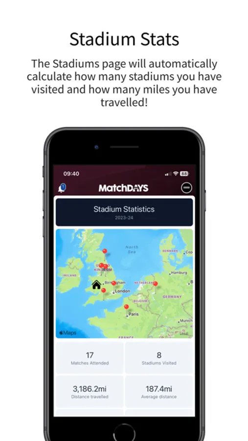 The ultimate App for football fans, tick off the fixtures you have attended and let the MatchDays dashboard automatically populate with your personal stats.
