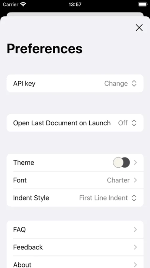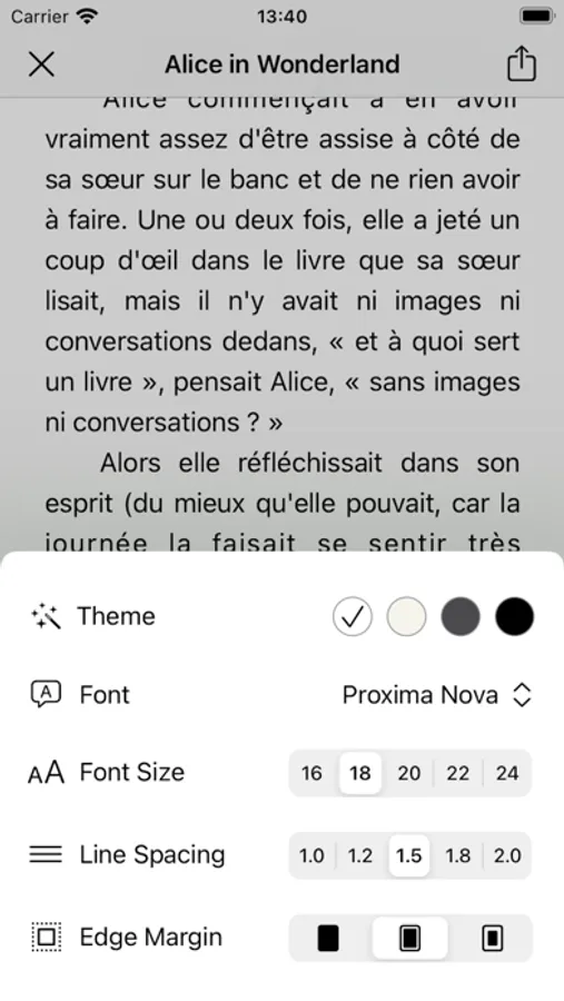 - Rich functionality settings: themes, custom fonts, font size, line spacing, margins, indentation, etc.