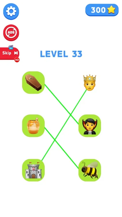 Welcome to Emoji Game– the coolest and most fun brain game in town! Picture a world filled with colorful emojis waiting to be matched and connected. It's like a puzzle adventure where you draw lines to link those smiling faces and create a story as you go. This casual game is all about having a good time while giving your brain a workout. Every match you make unlocks new levels and surprises, keeping the fun going. The more you play, the more rewards you earn, making it super satisfying. Draw the line to connect multiple elements from different rows. Complete the levels by matching the emoji correctly and level up the ranks in this emoji puzzle brain games. Test your brain by matching multiple icon and finding relation of elements. Think and accomplish the challenges in this emoji puzzle: match the icon.