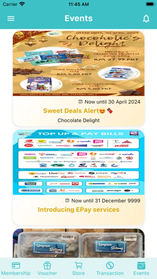 • Membership: Collect points for every amount spend, check your latest points to redeem vouchers