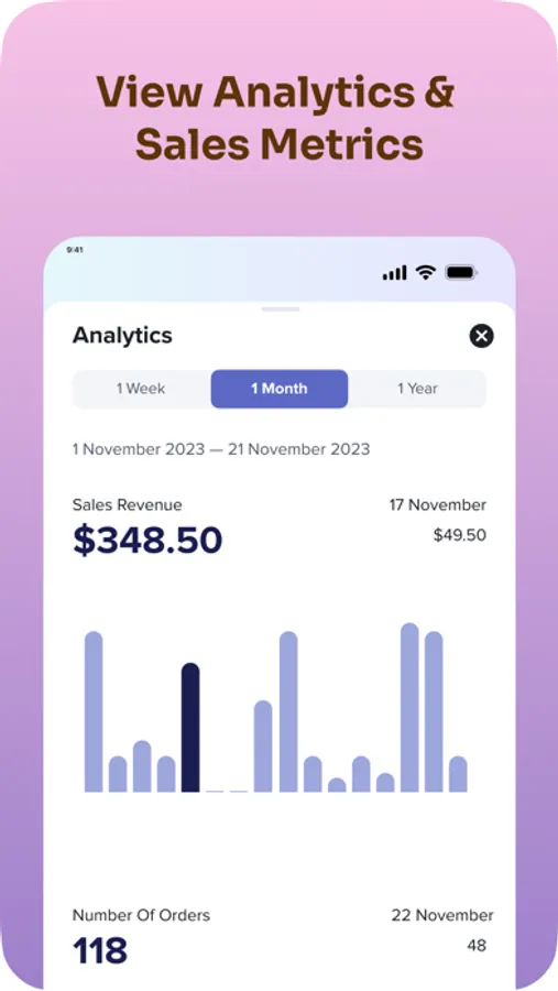Keep on top of your sales with our easy to use app. Get notified anytime you receive a new sale. The analytics stats also help you keep your finger on the pulse on your business.