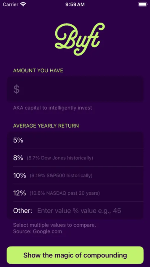 05. Simplicity at Its Finest: Buft is not an investment tool; it's the easiest compound calculator you'll ever use. Period.