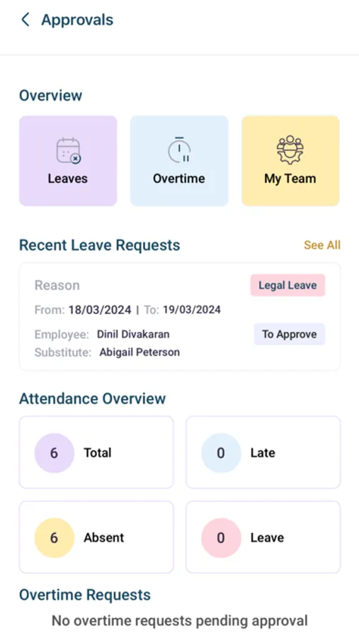 1. Leave Management: Easily request, approve, and track leaves, ensuring seamless workflow management.