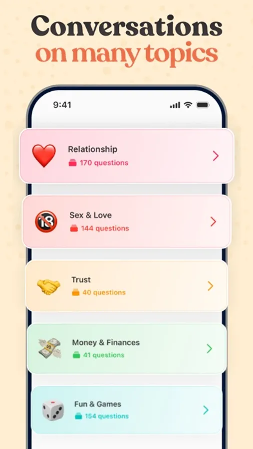 - Answer hundreds of questions and spark meaningful conversations with your partner.
