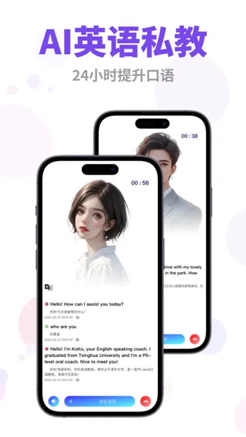1、24小时实时一对一联系,对话聊天方式学习口语,比真人对话更有趣。