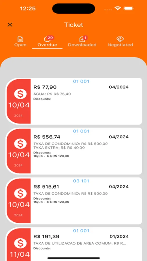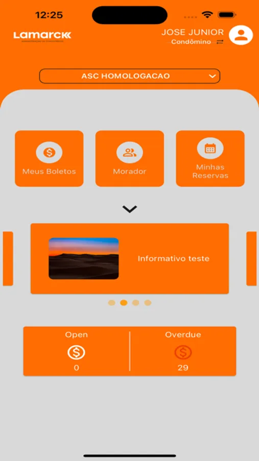 1) Visualizar dados dos boletos bancários gerados para o apartamento ou casa do condômino.