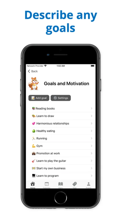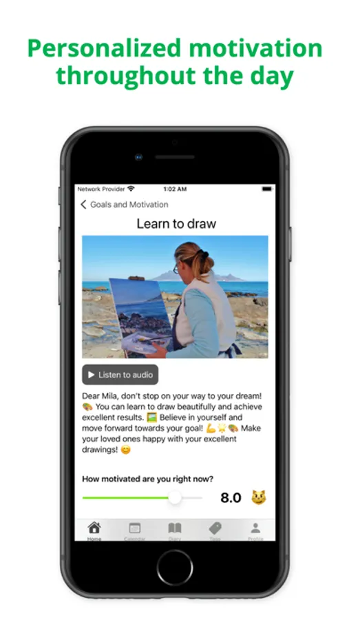 Increase your level of motivation! Describe absolutely any goals you want to achieve and start receiving personalized motivating notifications. This will help you stay motivated and achieve any heights.