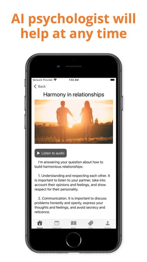 An AI psychologist will help you any minute! Share your problems and experiences with an AI psychologist and instantly receive support.
