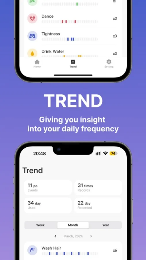 MarkTimes can help you keep track of these life events and health issues. You can easily record any event and view your history through a timeline. Utilize statistical charts to understand trends, helping you better understand yourself.