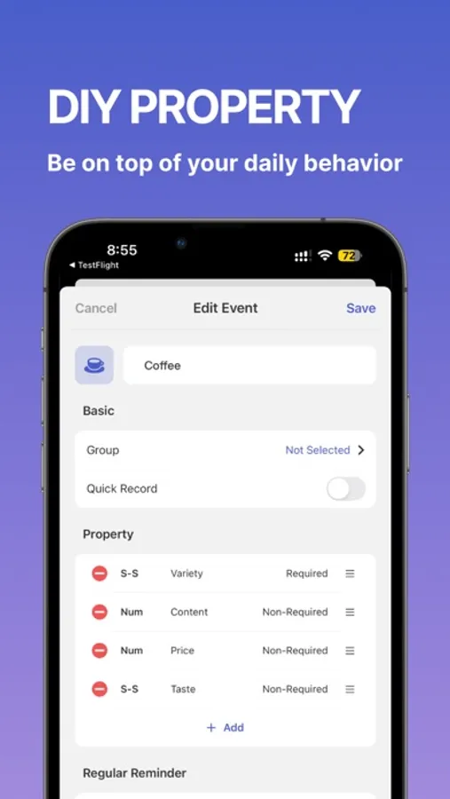 You can set regular reminders for events to encourage you to record regularly. For events that haven't occurred, unoccurred reminders can alert you when the set number of days have passed.