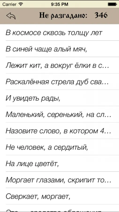 Приложение включает в себя 1000 загадок на любой вкус, различной тематики и разного уровня сложности. Это отличная зарядка для ума и прекрасное средство скоротать время!