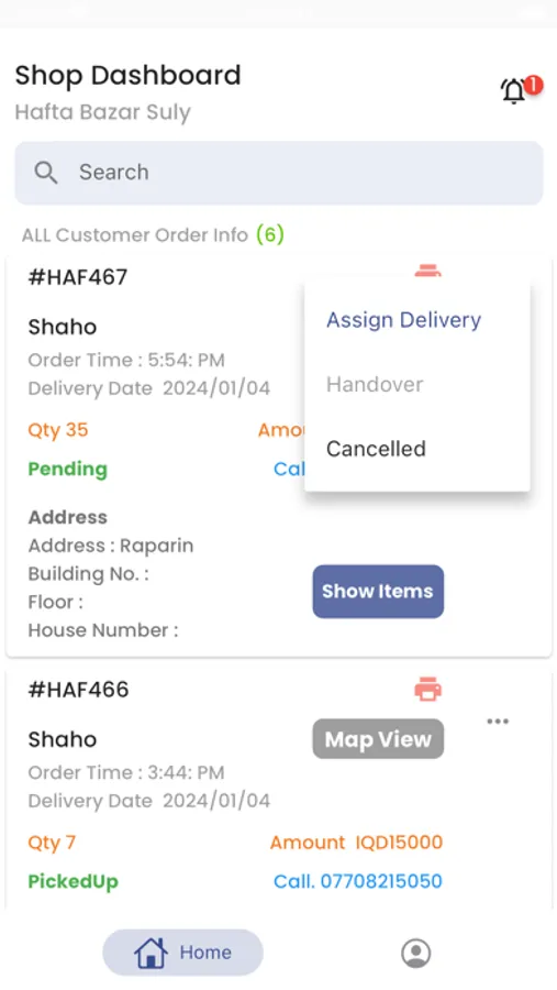 Tory Delivery App is for managing order by shop owner and riders or drivers .