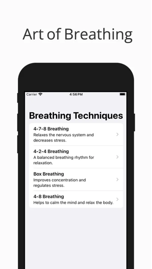 - Diverse Breathing Techniques: Explore a variety of breathing techniques like 4-7-8 Breathing, Box Breathing, Deep Breathing, and more, each with detailed instructions and benefits.