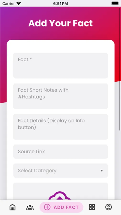 Amazing facts app allows to add your own finding facts. By following other users you can grow your social network to get benefit from each other's added facts & information.