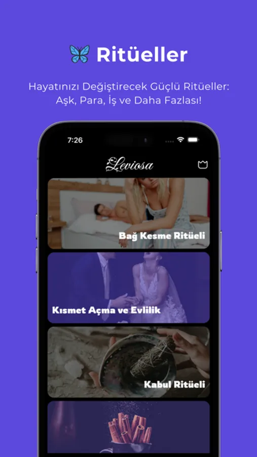 Leviosa, hayatınızda istediğiniz değişiklikleri yapmanız için bir ritüel rehberi olarak hizmet veren mobil bir uygulamadır. İçindeki birçok ritüel ile aşk, bağlama, bağ kesme, aşık etme, gideni geri getirme, para, iş, evlilik ve kabala gibi konularda size yardımcı olacak ve istediğiniz sonuçları elde etmenize yardımcı olacaktır. Ritüel yanı sıra Tarot özelliğimiz ile daha önce hiç bir yerde yaşamadığınız tarot deneyimini sizlere sunuyoruz. Tek kart açılımı, üç kart açılımı, yedi kart açılımı, kelt açılımı ve daha bir çok tarot çeşidimiz ile ücretsiz ve sınırsız şekilde dilediğiniz kadar tarot bakabilir medyumlarımızdan falınıza 5 farklı medyum gözü ile baktırabilirsiniz.