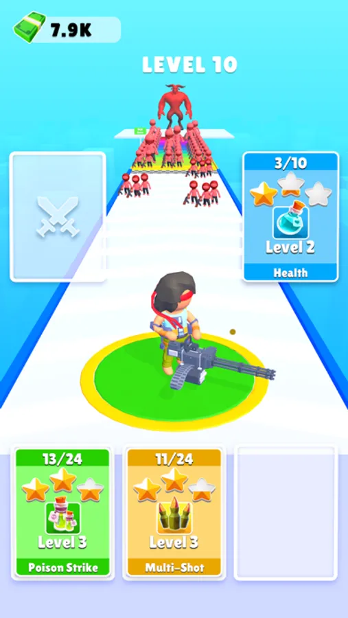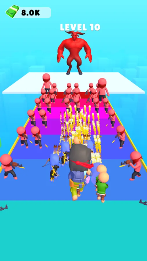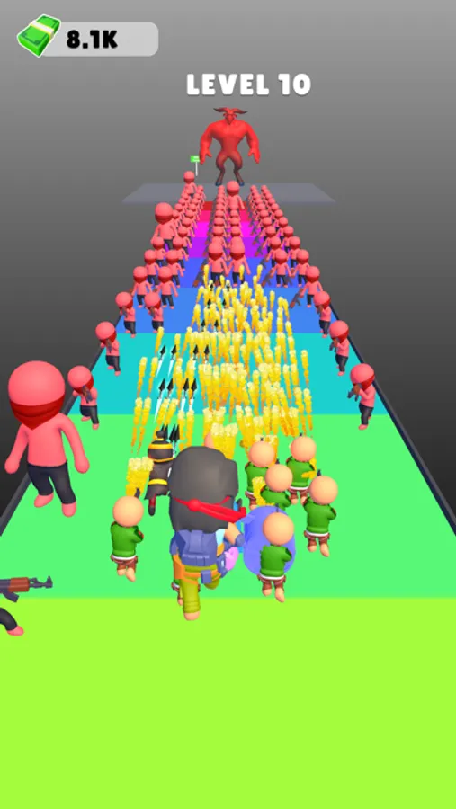 Run, shoot, and strategise in this hyper-casual endless runner! Make critical decisions to boost fire range and rate. Blast pillars spawning troops like archers and ninjas, building an army for an epic showdown. Face hordes and massive bosses, collecting coins for upgrades. How far can you go in this intense, action-packed challenge?