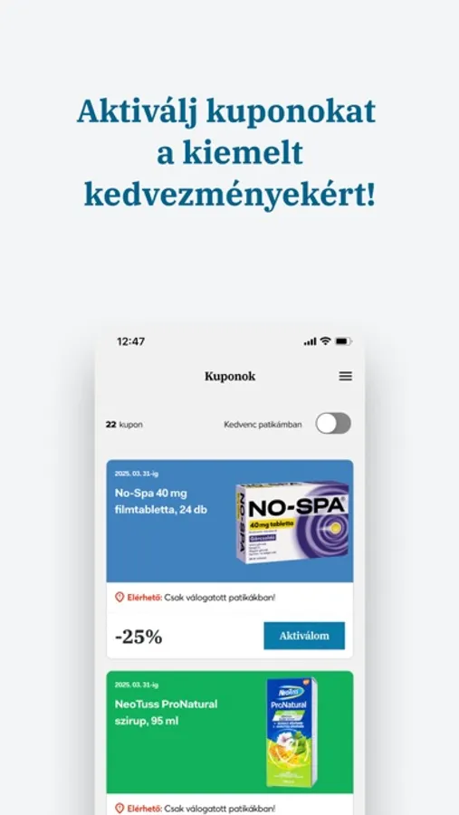 Folyamatosan változó kuponokkal egyedi kedvezményeket zsebelhetsz be. Aktiváld kuponjaid az ingyenes mobil alkalmazásban, és vásárlásod során csak mutasd fel hűségkártyád a kedvezményekért!