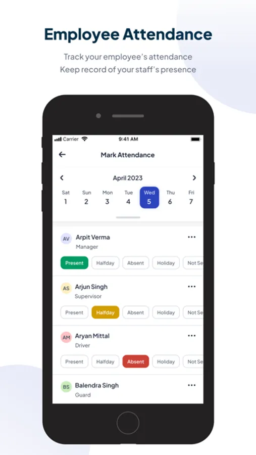 Employee Management , Employee Attendance, Staff Attendance and Payroll, Employee advance tracker, Business manager, Cashbook / Khata, Free invoice creator, Free employee attendance, Vehicle Expense, Employee expense, Employee Task Manager.