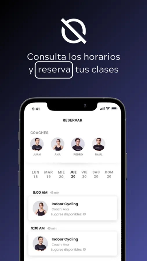 Conoce los horarios de tu estudio, reserva y compra fácilmente desde la app.