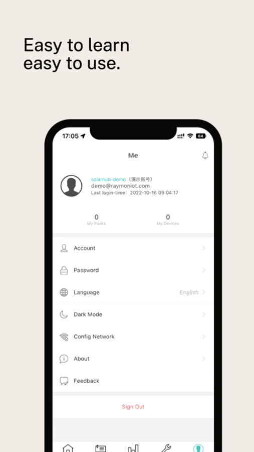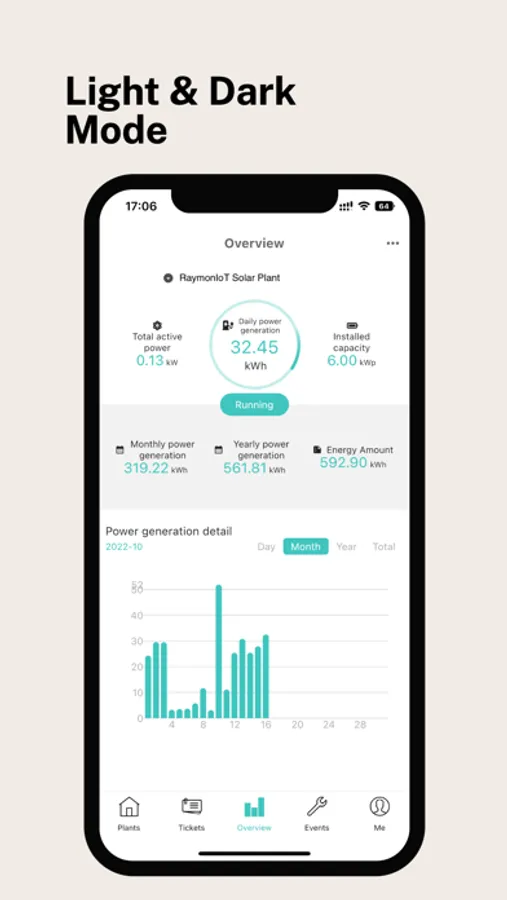 The application includes functions such as user login and registration, quick creation of power stations, quick creation of collectors and distribution networks, viewing of power station summary and details, equipment list and details, work order list and details, alarm list and details, etc. It supports two modes of Light & Dark. The interface is simple and clear, providing 7x24 hours of data monitoring services.
