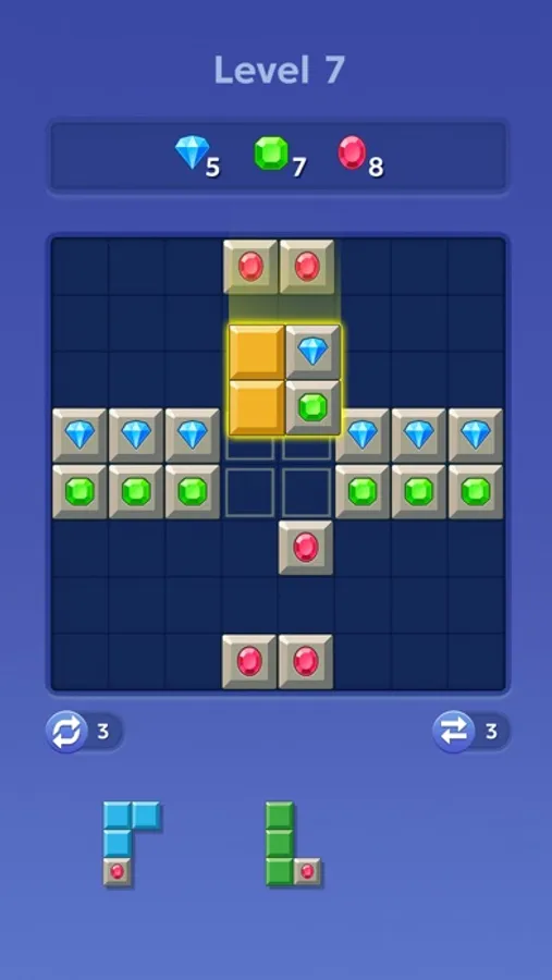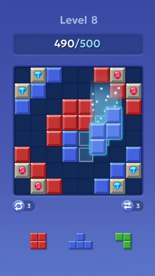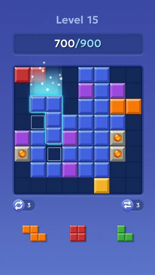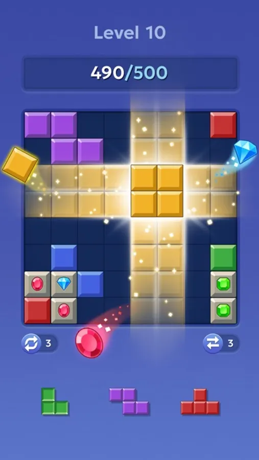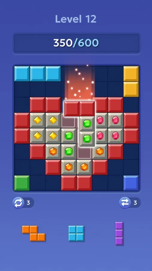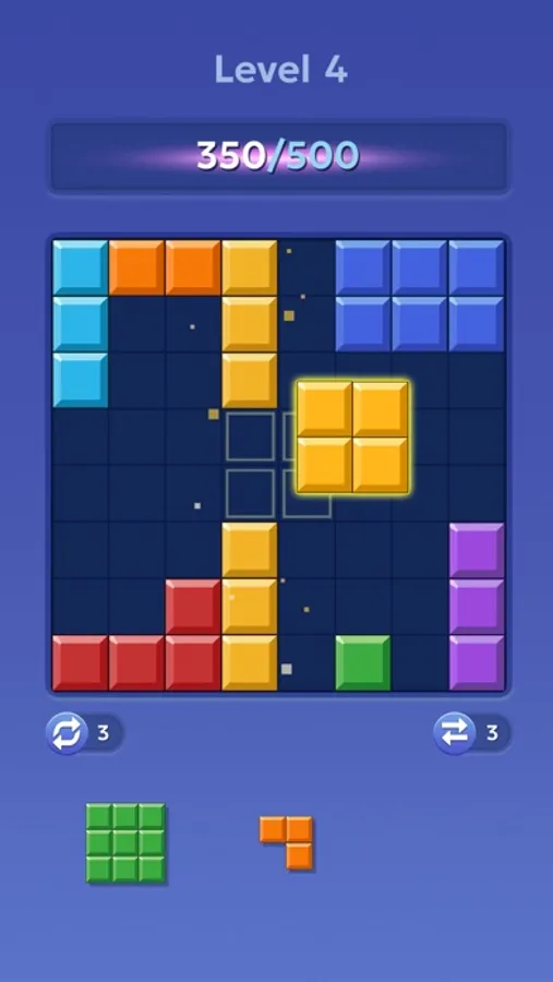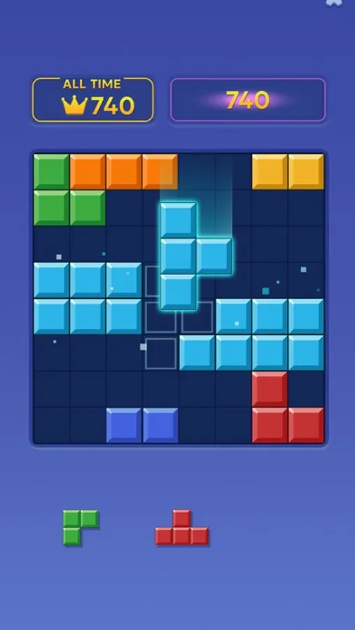 - Drag and drop the blocks onto the game board to create complete rows or columns