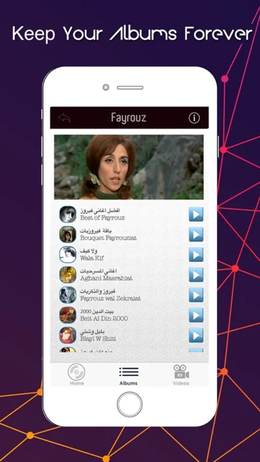 The only official music App for The Legend "فيروز - Fairouz" with all the original albums and Videos you definitely should have.