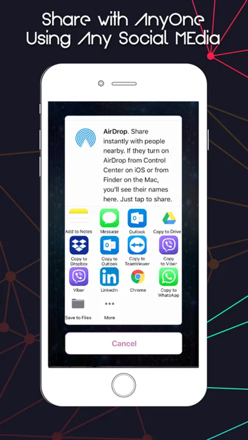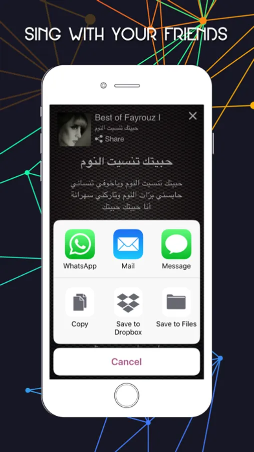 - Share Your Songs to Facebook, WhatsApp, Airdrop, Add to Notes, Message, Outlook, Copy to Drive, Copy to Dropbox, Copy to Outlook, Copy to TeamViewer, Copy to Viber, Viber, LinkedIn, Chrome, Copy to WhatsApp, Save to Files, E-mail, Twitter, Facebook and More as per your device social media apps.