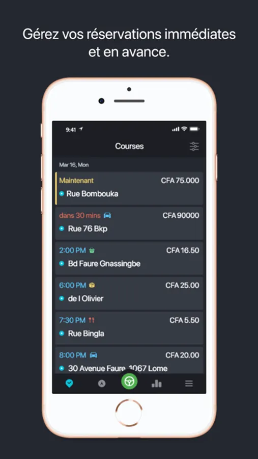 - D’un service de navigation précis pour vous rendre au point de départ et conduire votre client