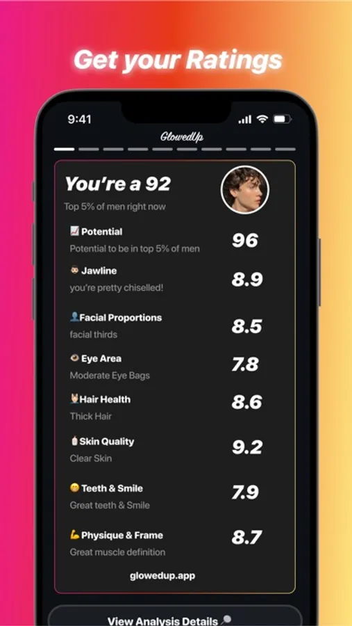 The MOST detailed personalized Glow Up app that has ever existed : GlowedUp believes in the power of hard work and dedication in the journey of self-transformation. We're here to provide you with the tools and insights necessary to start your journey. We are the looksmax AI tool to help u looksmax & Umax yourself.