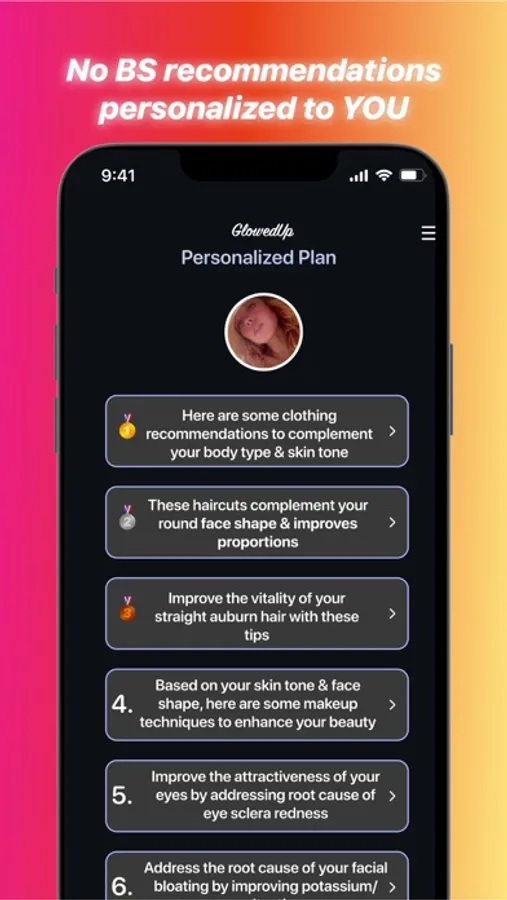 4) Implement personalized glow up beauty & attractiveness recommendations tailored to your unique traits