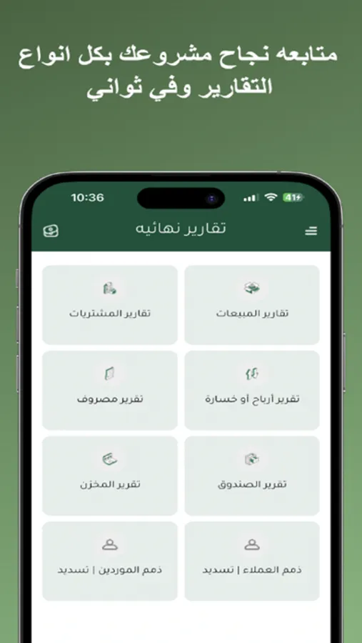 - You can issue all reports and invoices in Arabic.