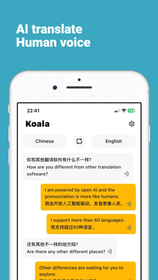 Simultaneous Interpretation: Want to have a real conversation? Koala Translation supports simultaneous interpretation, allowing you to have barrier-free cross-language dialogues with others.