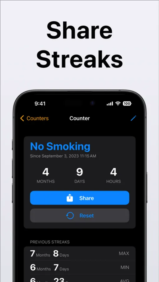 See your current streak and share it with friends and family.