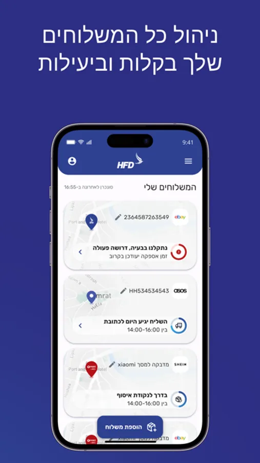 ברוכות וברוכים הבאים לרפובליקת המשלוחים של HFD שבה האפליקציה שלנו היא הנשיאה. האפליקציה שלנו כל כך חכמה, שהיא יודעת את מיקום החבילה ותעדכן אותך על זמן ההגעה עוד לפני שהשליח יצא אליך. זה מעולה. מה יותר מעולה? שמעכשיו, אפשר לחבר את האפליקציה לחשבון המייל שלך ולקבל עדכונים על כל החבילות שבדרך אליך, ישר למייל. זה כמו קסם אבל בלי שפנים.