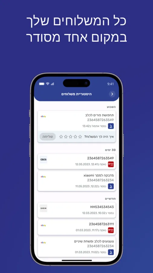 נתתי כוכב אחד כי אי אפשר לתת אפס כוכבים. חברת שילוח דפוקה, קיבלתי משלוח מעלי אקספרס ואני עובר דרך ייסורים בנסיון להגדיר את נקודת המסירה. אפליקציה , מעבר לזה שהם מחייבים אותי להתקין אותה, שזה נבזות לכשעצמה, פשוט נוראה. אני עומד לפנות לעלי ולבקש לא להשתמש בשירות המחורבן שלהם.