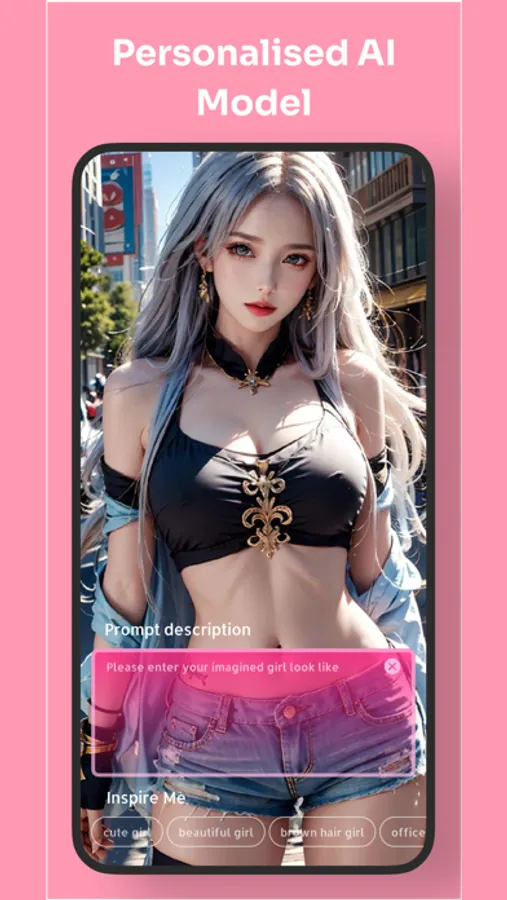 You can choose our model or create your own by entering a text prompt. You yourself can choose the girl of your dreams, from hair shades to eyes that reflect your desires. You can wish for any girl, change them every day, your dreams are just a few clicks away. And then you will be happy every day.