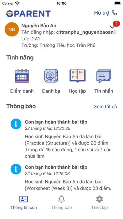 Ứng dụng đáp ứng cho các bậc phụ huynh theo dõi tình hình học tập của học sinh ở mọi cấp học.