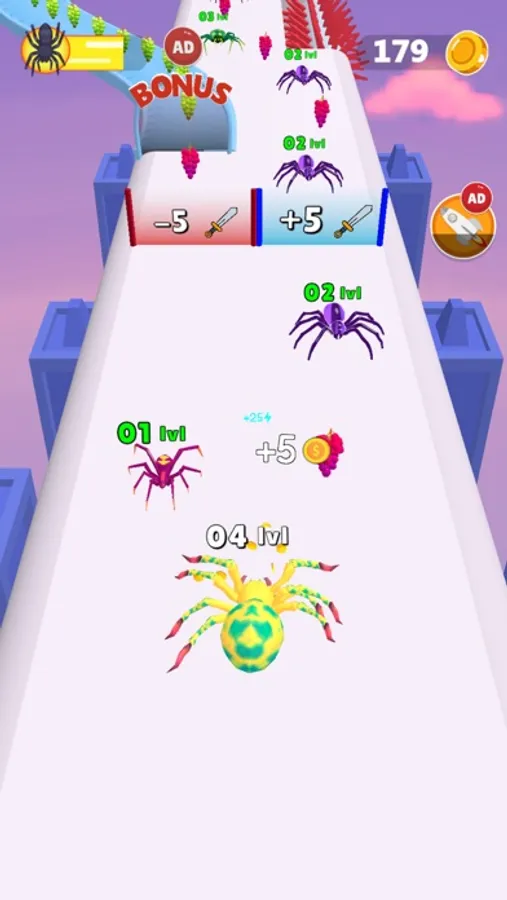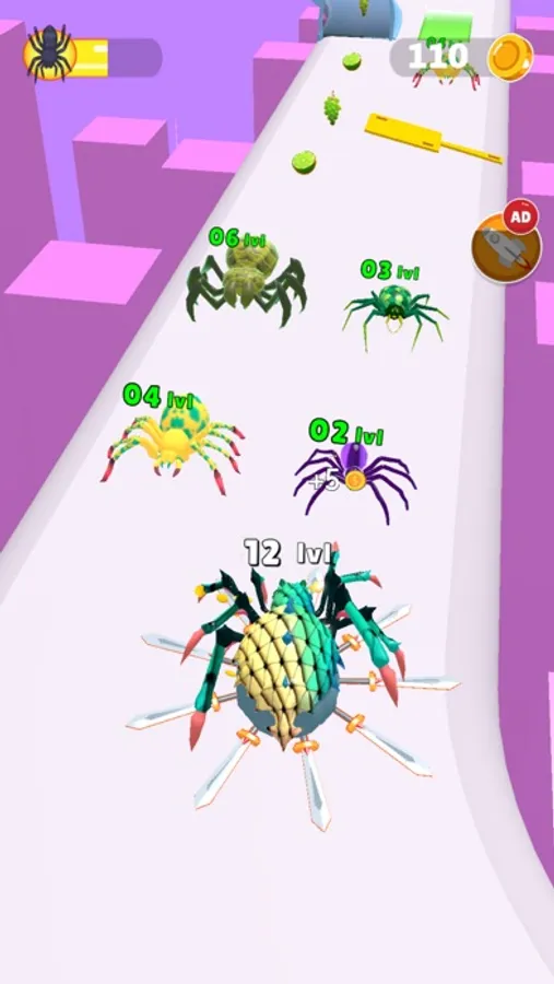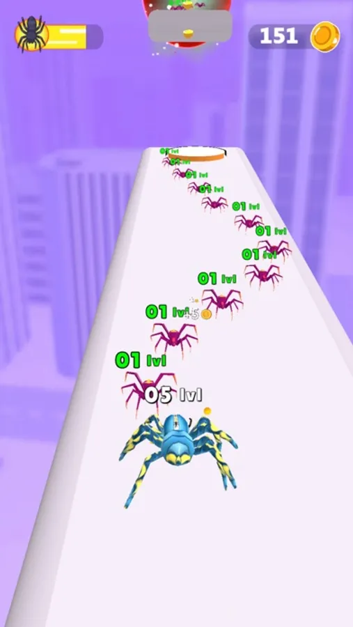 Embark on a journey as a tiny spider, aiming to become the mightiest of them all in this captivating hyper-casual mobile game. In Spider Evolution Run, your adventure starts on a vibrant running track, where every step is a leap towards becoming a stronger and larger spider.
